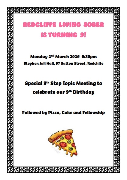 Redcliffe Living Sober 9th Birthday When Mon, 2 Mar 6:30 pm - 8:30 pm Add To Calendar Download ICS Google Calendar iCalendar Office 365 Outlook Live Event Type Events Redcliffe Living Sober is celebrating it’s 9th Birthday Monday 2nd March @ 6:30 pm Stephen Jull Hall, 97 Sutton Street, Redcliffe.